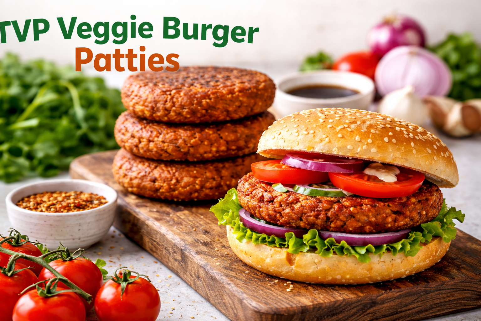 🥕 TVP Veggie Burger Patties Ingredients 1 cup Textured Vegetable Protein (TVP) 1 teaspoon onion…